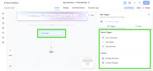 Klik New Trigger, lalu pada panel trigger di sisi kanan pilih opsi Form Submitted untuk melanjutkan.