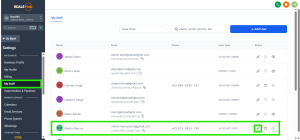 Klik Settings di kiri bawah, lalu pilih My Staff untuk melihat daftar anggota tim.