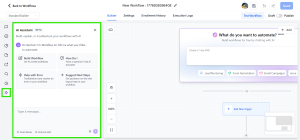 Di dalam Workflow Builder, Anda juga bisa menggunakan AI chatbot assistant untuk membantu membuat atau menyempurnakan workflow